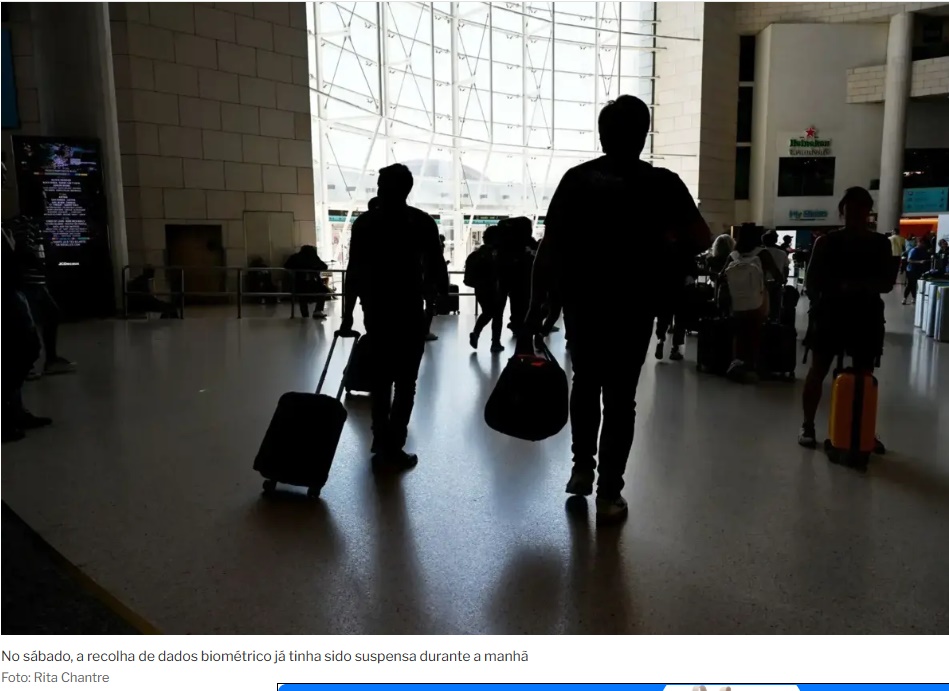 No sábado, a recolha de dados biométrico já tinha sido suspensa durante a manhã para evitar que os passageiros perdessem os seus voos devido às longas filas.