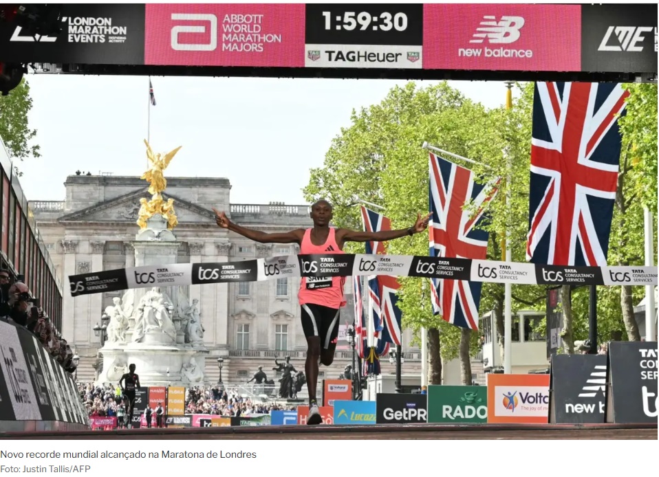 O queniano Sabastian Sawe venceu, este domingo, a Maratona de Londres, em 1:59.30 segundos, estabelecendo o novo recorde do mundo e o primeiro registo nos 42,195 quilómetros abaixo das duas horas.